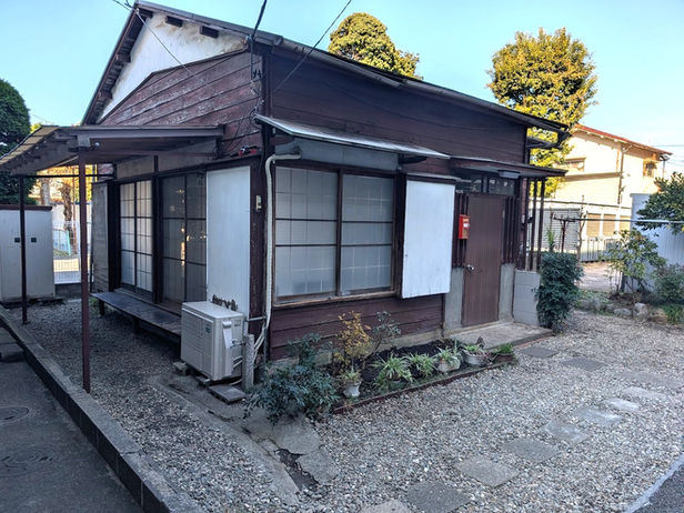 アパートスタジオから古民家スタジオ裏側を撮影。