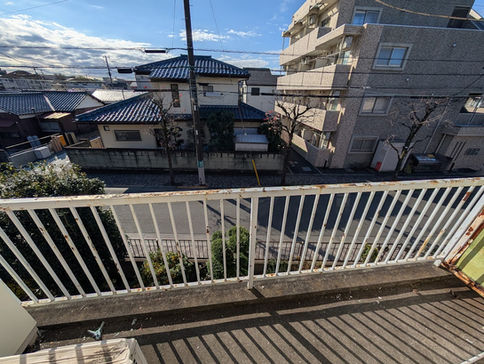 204号室のベランダからは下の一般道をよく見渡すことができます。