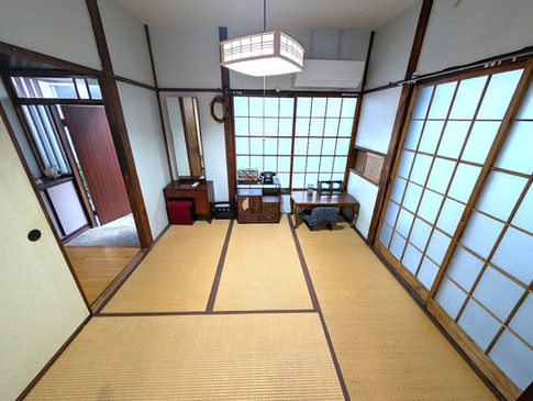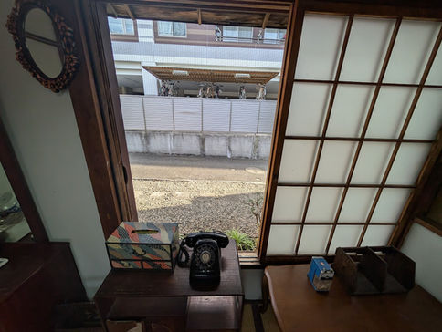 奥の和室ガラス窓を開けると向かいにアパートスタジオがあります。